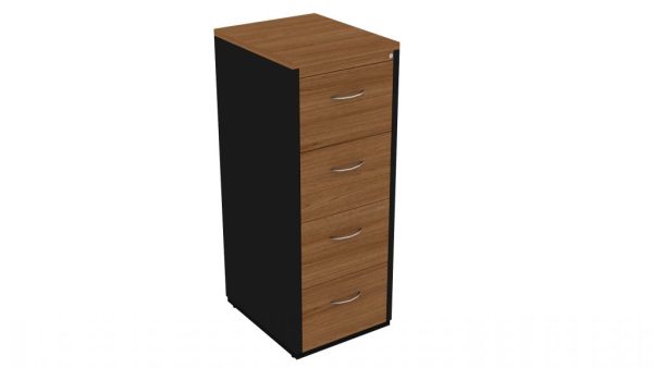 Archivero Vertical modelo “Bancario” gavetas tamaño oficio, con correderas de extensión, cerradura múltiple. Fabricado en melamina de 28mm. y cantos de PVC. *Costados / Laterales visibles.