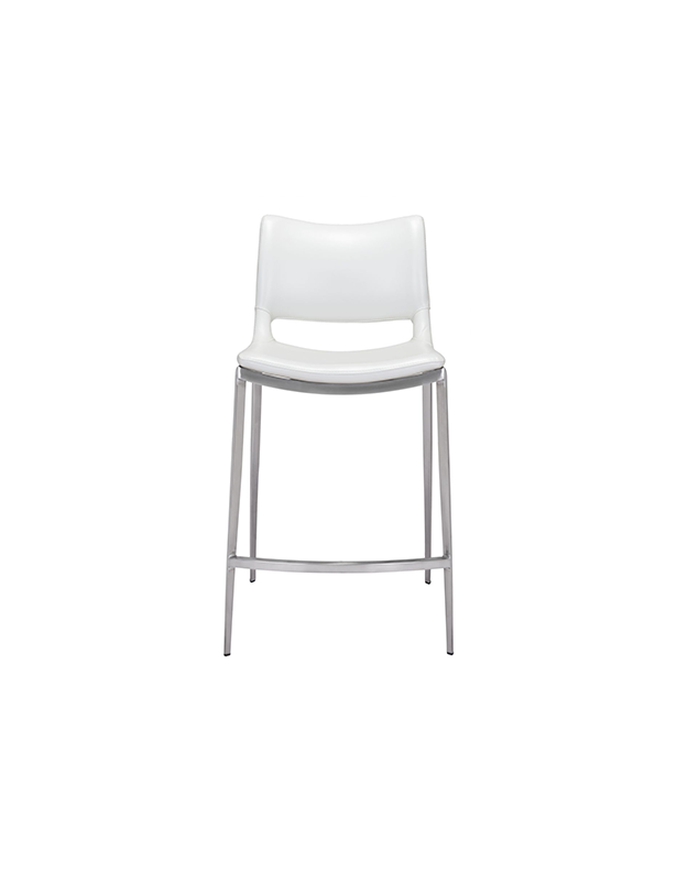 Diseñada para brindar comodidad, esta silla de mostrador ergonómica es la solución perfecta para su hogar u oficina. Un marco de acero inoxidable cepillado juega un papel de apoyo, mientras que el reposapiés curvo incorporado lo mantiene firmemente plantado. La cubierta del asiento de piel sintética blanca es elegante y moderna, lo que convierte a esta silla de bar en el complemento perfecto para cualquier habitación