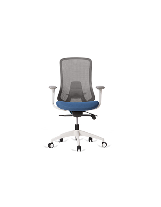 Silla ejecutiva con respaldo en malla y asiento tapizado en tela.