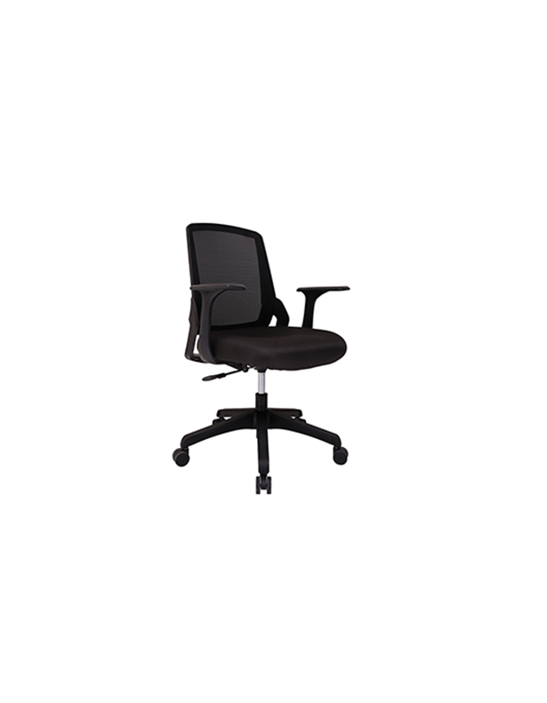 Silla operativa DELTA respaldo en malla color NEGRO, descansa brazos, marco de respaldo y cruceta en polipropileno color negro, asiento tapizado en tela color NEGRO.