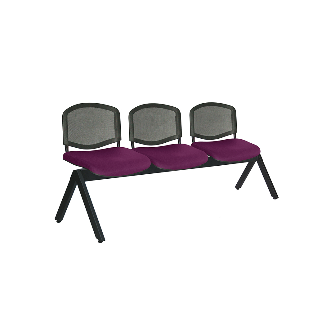 estructura: de acero tubular rectangular de 1 1/2″ X 3″, calibre 16, asientos y respaldos de perfil redondo tubular de acero ponchado con travesaños separadores tubulares redondos de acero con acabado de pintura epóxica (electrostática) color negro mate.