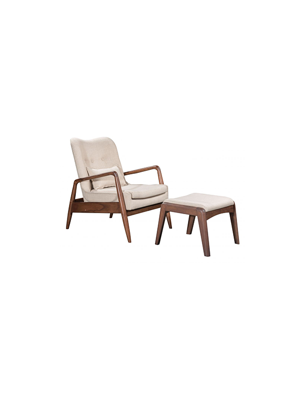 Brazos esculpidos delgados, el asiento acolchado con botones de felpa, el respaldo y los detalles de la otomana para una apariencia elegante. Tapizado en una tela texturizada cómoda que contrasta con un marco de madera resistente con un acabado en una rica y cálida mancha de nogal. La colección incluye un juego de sillón lounge y otomana en piel sintética negra, blanca o tela de poliéster beige.