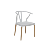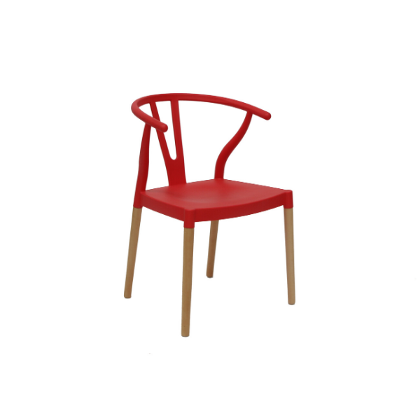 Silla de polipropileno con patas de madera tono natural. Disponible en colores rojo, arena, negro y blanco. Altura de asiento a 45 cm.