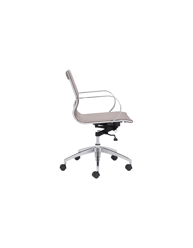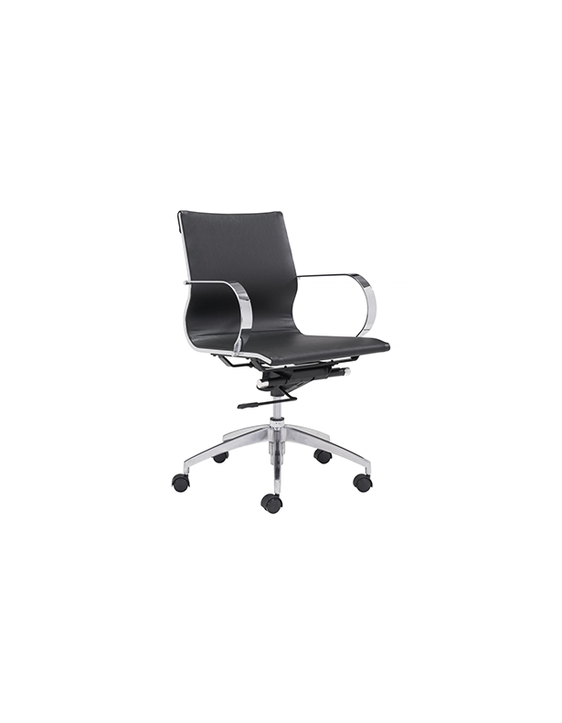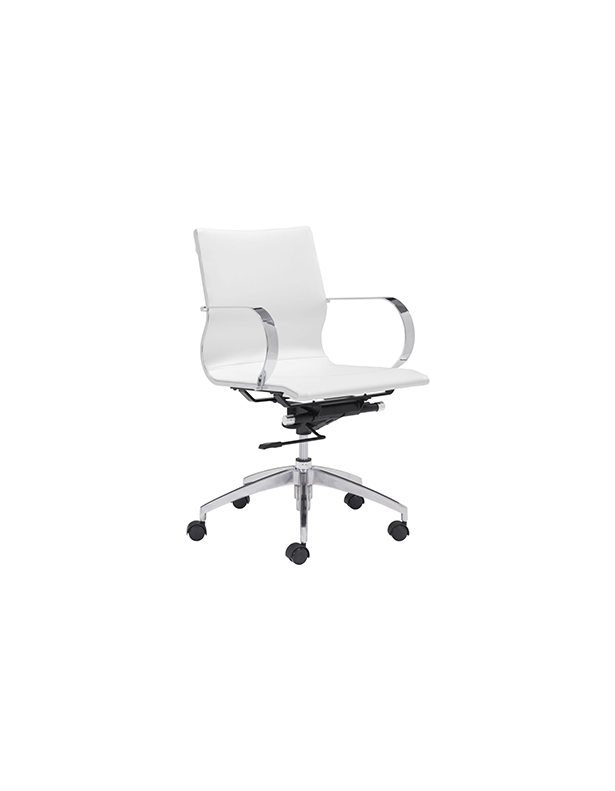 La silla de oficina con respaldo bajo Glider presenta un perfil delgado pero cómodo con soporte lumbar adicional, tapicería suave 100% poliuretano y brazos cromados. Te sentarás con elegancia mientras los suaves deslizamientos crean un movimiento sin esfuerzo. El mecanismo de inclinación y la altura del asiento son ajustables, ya que el pistón hidráulico se asienta sobre la base de estrella de metal para deslizarlo sin problemas hasta su lugar. Las opciones de color son negro, blanco, gris y marrón 100 % poliuretano.