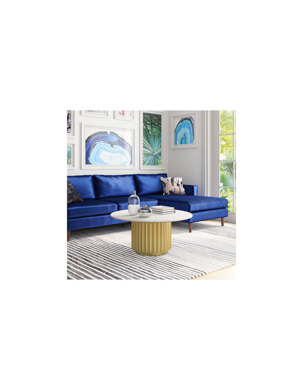 Perfecta para el maximalismo con su forma decorativa y glamorosa, la mesa de centro Justin tiene una tapa de mármol con una base de acero pintado. Queda genial en cualquier espacio, residencial o comercial o de hostelería.