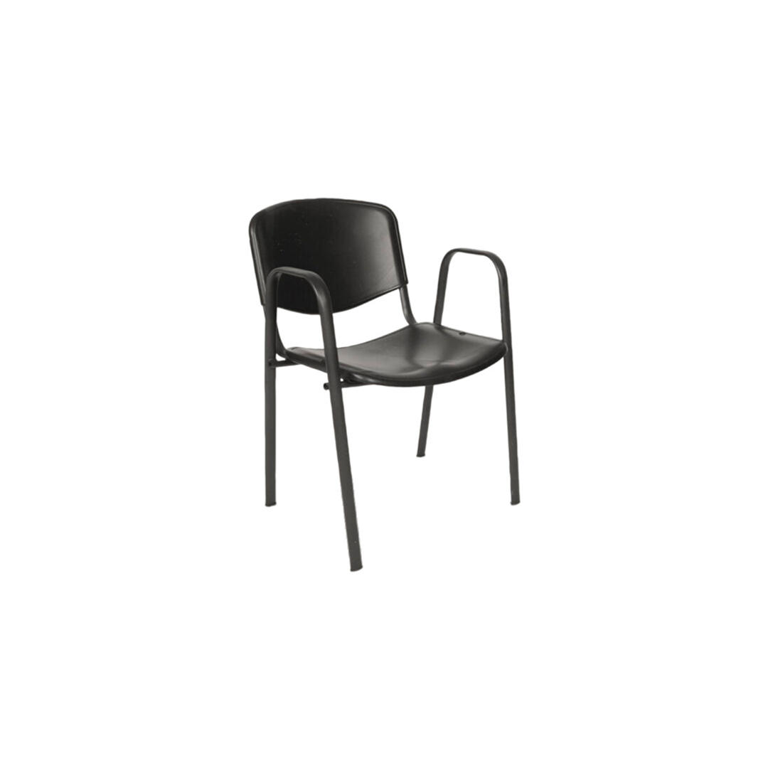 Estructura estibable en tubular ovalado de 1” cal. 18 en patas y brazos, cal. 18 en soporte de respaldo, terminado en pintura epóxica texturizada con soporte en asiento de tubo redondo de 5/8” cal. 18, tapones de polietileno en terminales para evitar rayaduras a pisos, plástico de polipropileno en asiento y respaldo, sin tapiz, brazos en tubular ovalado de 1” cal. 18, integrados a la estructura.
