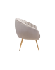 La silla Max está envuelta en poliéster y se asienta sobre una estructura y patas galvanizadas en oro. Este diseño decorativo es cómodo, elegante y se adapta a cualquier espacio, hogar u hotel.