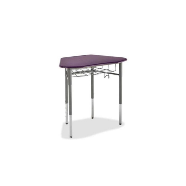 Mesa de trabajo individual trapezoidal classic con altura ajustable, con portalibros, ideal para formar equipos de 3 a 8 personas.