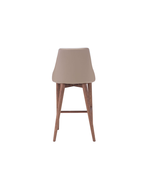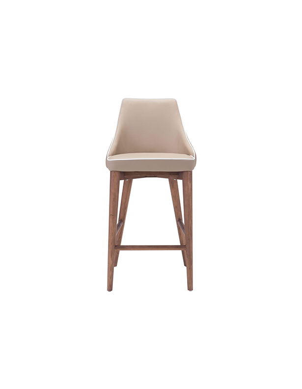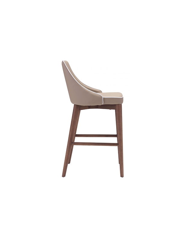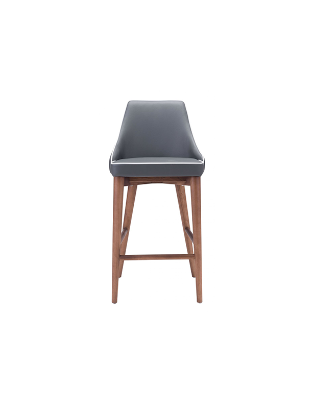 Cuenta con un exquisito respaldo delgado estilo ala y un asiento lujoso con un detalle de adorno contrastante y una sólida base/reposapiés completamente de madera con un cálido acabado en nogal. Opciones de color suave 100 % poliuretano en gris oscuro o beige con detalles en blanco.