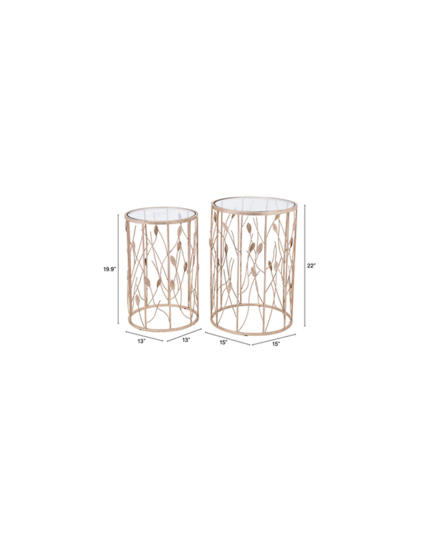 Este juego de dos mesas redondas permite más espacio para colocar sus refrigerios, bebidas o revistas. Su diseño en forma de hoja añade vida y movimiento a cualquier espacio del hogar. Su base dorada animará el espacio vacío junto a tu sofá o sillón. Agregue vida vegetal a su sala de estar sin tener que regarla.