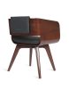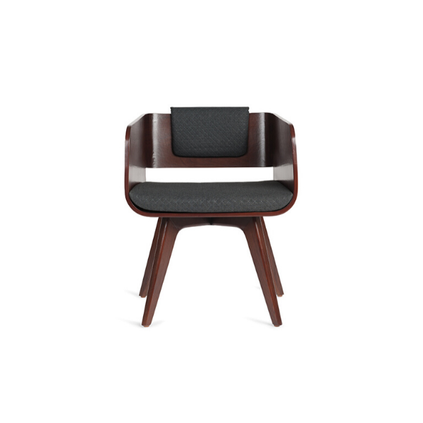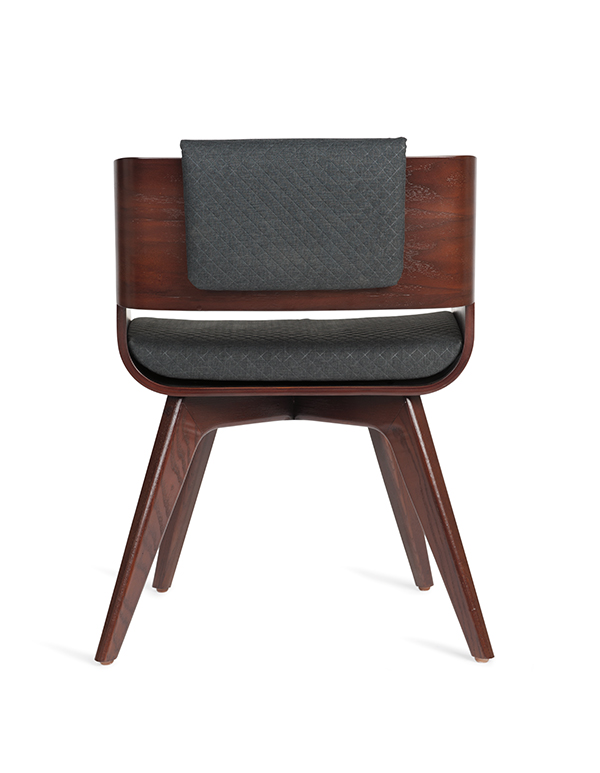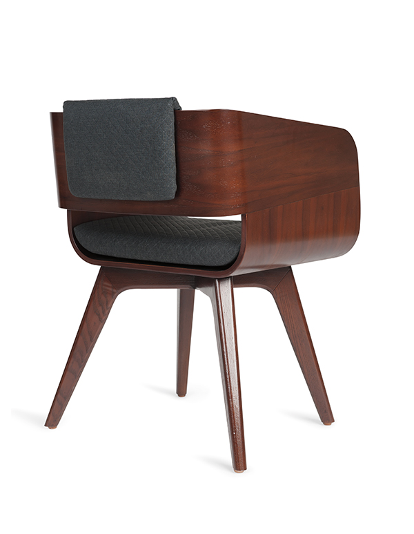 Silla en concha de madera de nogal. Cabecera y asiento en tela.